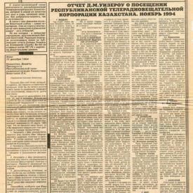 В 1994-1997 годах Лейла Бекетова2 опубликовала ряд научных трудов, посвященных реформированию телевидения и радио Казахстана: “Проблемы реформирования телевидение и радио в Казахстане”, “Реструктуризация Национального Телевидения и Радио”.