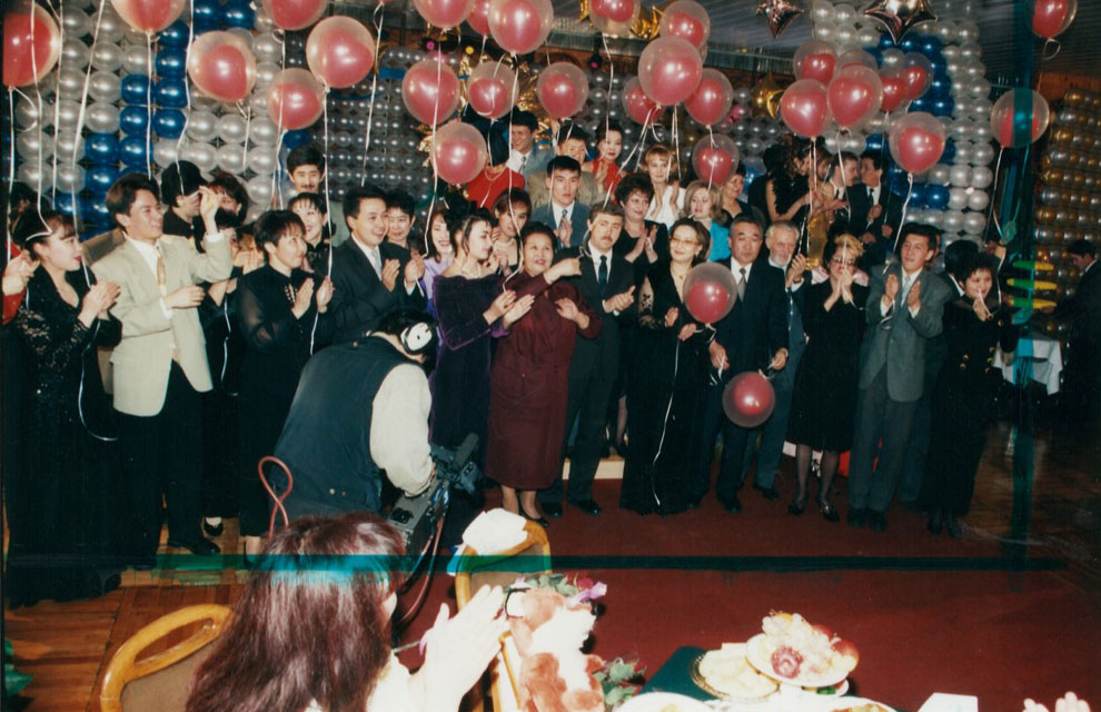 Первый эфир независимой телекомпании ТАН 1991 год. Выступление художественного руководителя, известного писателя Ануара Алимжанова, партнеров, сотрудников телекомпании