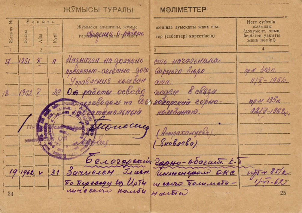 В 1960 году был приглашен на работу в управление Иртышского Полиметаллического Комбината на должность начальника проектно-сметно-договорного бюро комбината, где проработал до июня 1962 года.