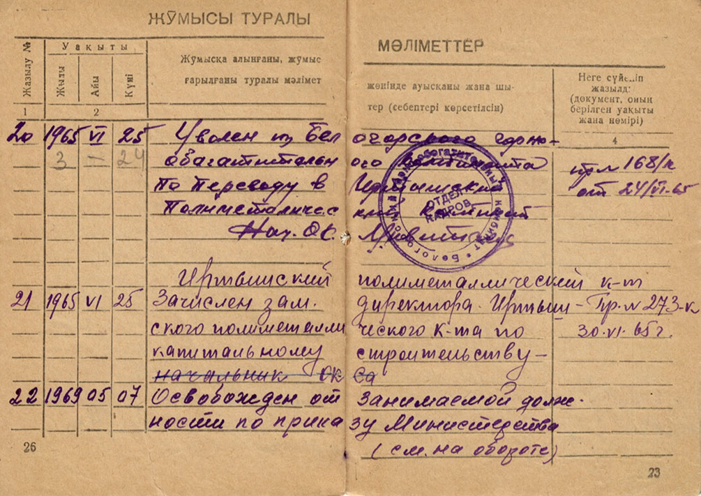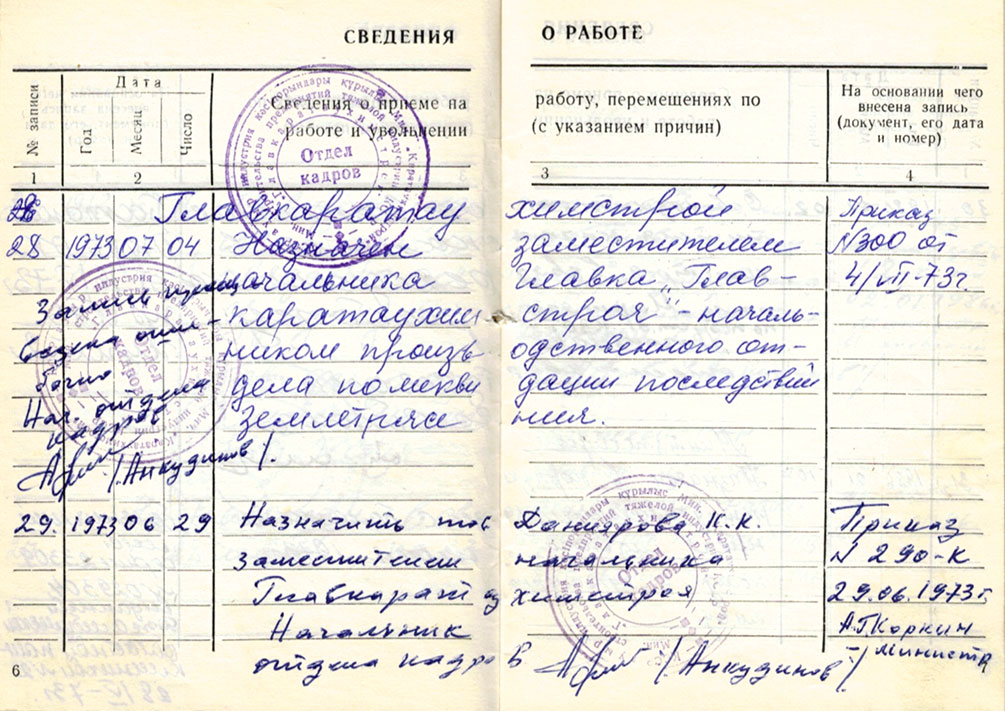 В 1971 году с учетом накопленного опыта работы в строительстве постановлением Джамбульского Областного Комитета был утвержден в Джамбульский Областной Комитет Коммунистической Партии Казахстана Заведующим Строительным отделом.